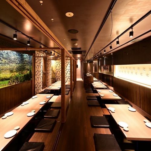 19~34명 완전 개인실.수많은 유명점을 다루어 온 공간 디자이너가 프로듀스하고 있어 점내는 차분한 어른의 분위기로, 느긋하게 편히 쉬실 수 있습니다.회사 연회 등에도 이용하십시오.